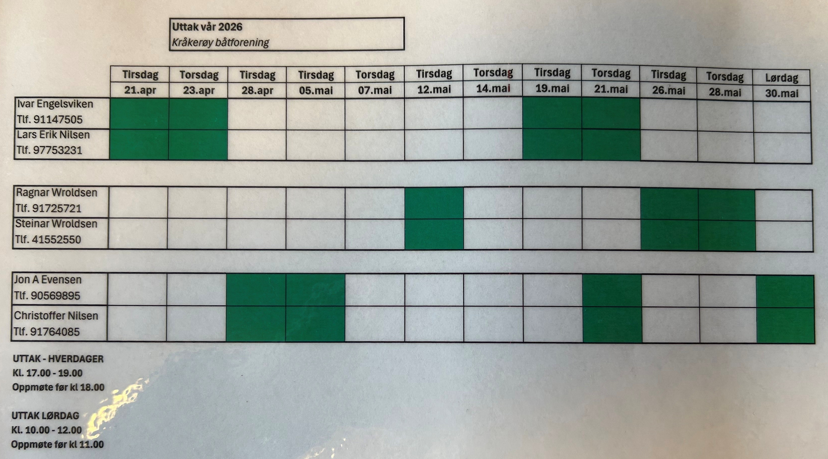 UTTAK FAST KRAN VÅREN 2026